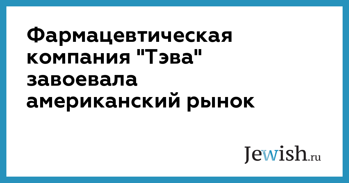 Фармацевтическая компания "Тэва" завоевала американский рынок