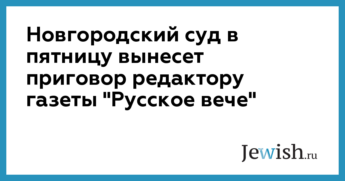 Новгородский суд в пятницу вынесет приговор редактору газеты "Русское вече"