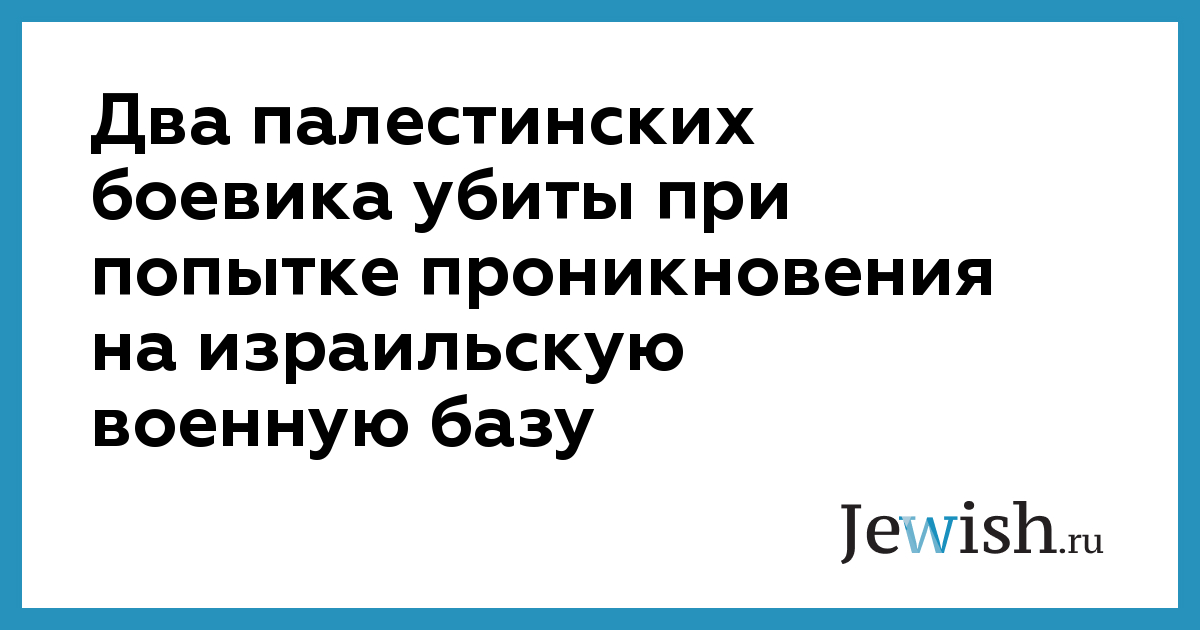 Два палестинских боевика убиты при попытке проникновения на израильскую военную базу