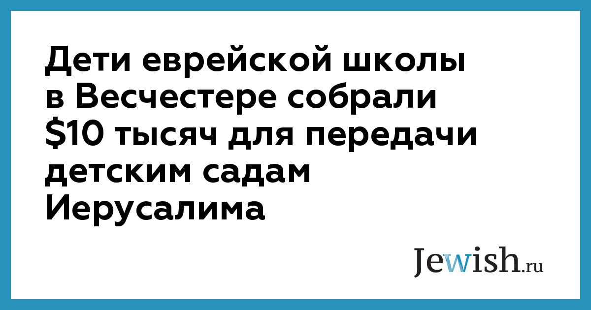 Дети еврейской школы в Весчестере собрали $10 тысяч для передачи детским садам Иерусалима