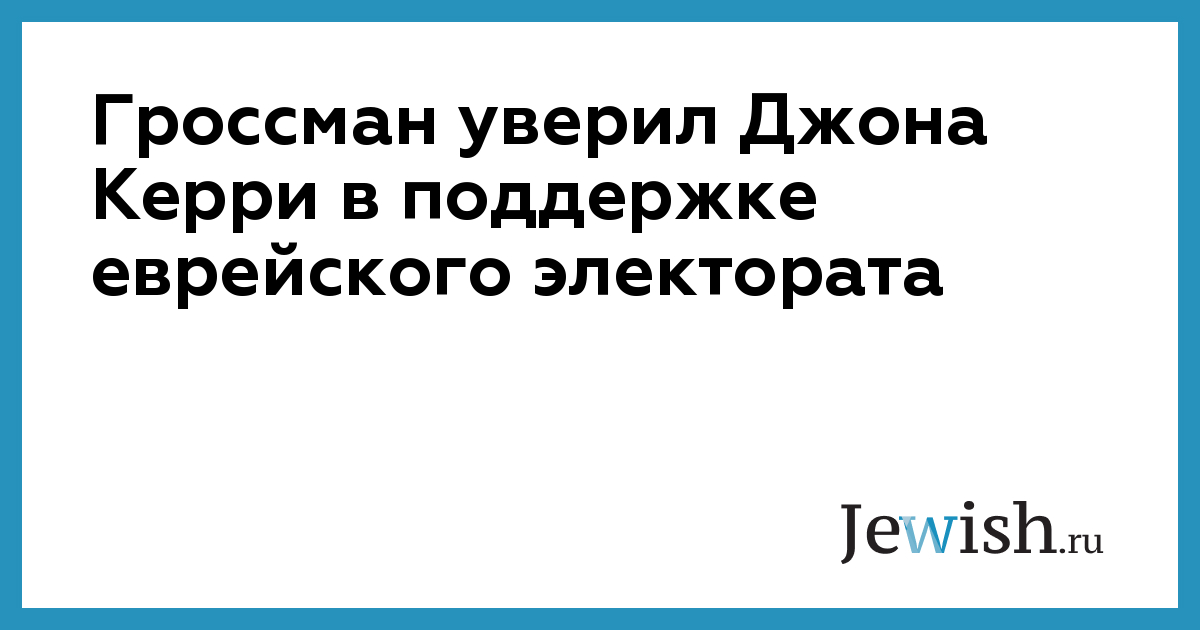 «По вопросу Ближнего Востока и американо-израильских взаимоотношений, я думаю, американские евреи могут чувствовать себя спокойно с Джоном Керри», — сказал Гросман в интервью газете «Джерузалем Пост».