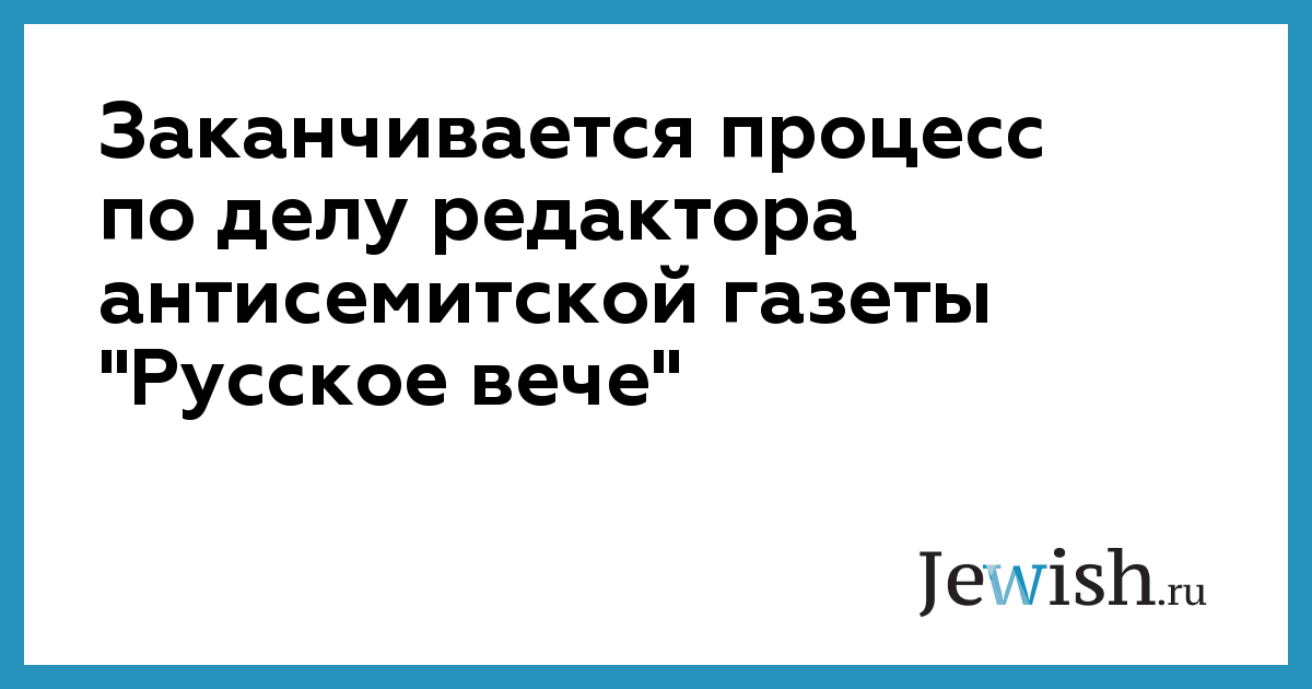 Заканчивается процесс по делу редактора антисемитской газеты "Русское вече"