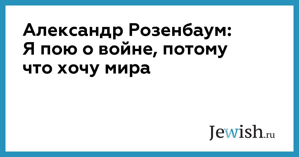 Александр Розенбаум: Я пою о войне, потому что хочу мира