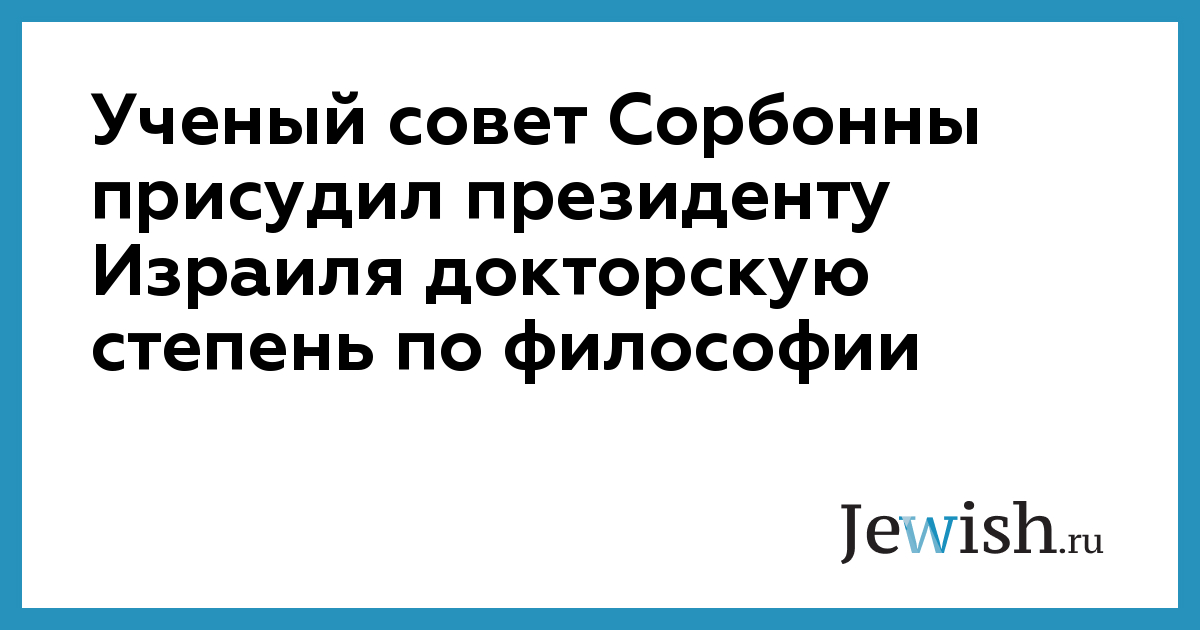 Ученый совет Сорбонны присудил президенту Израиля докторскую степень по философии