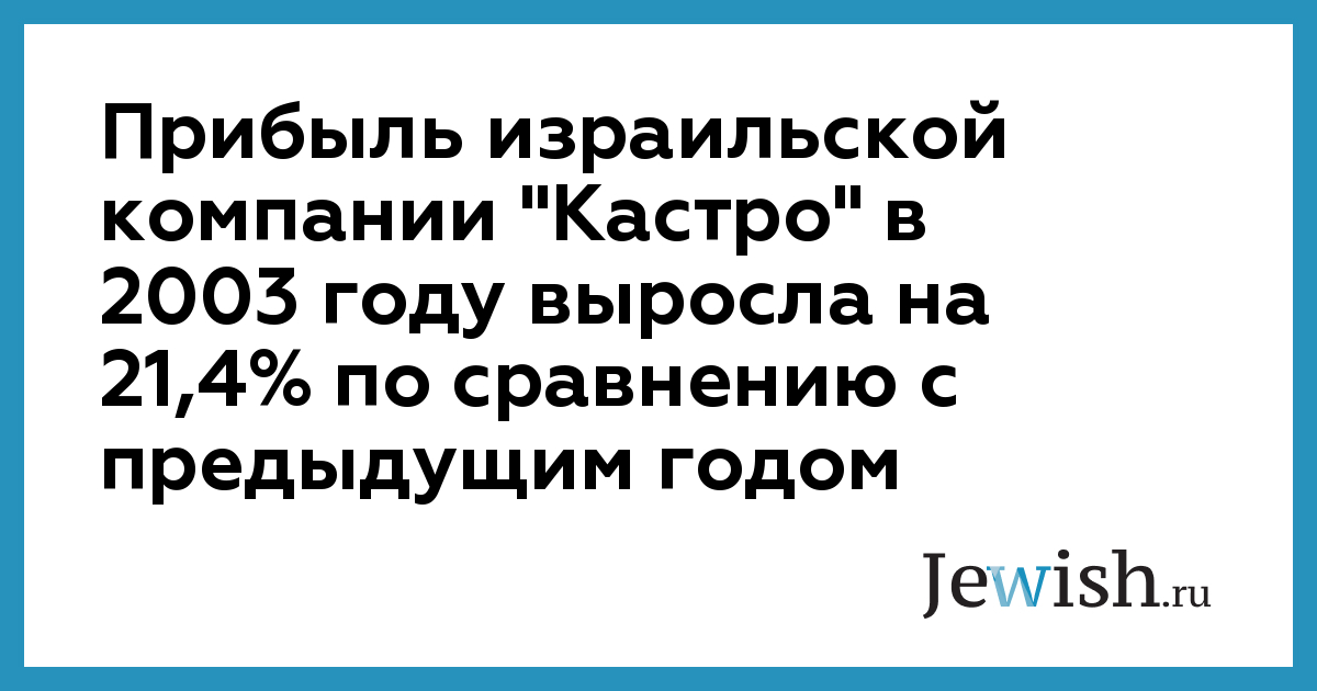 Прибыль израильской компании "Кастро" в 2003 году выросла на 21,4% по сравнению с предыдущим годом