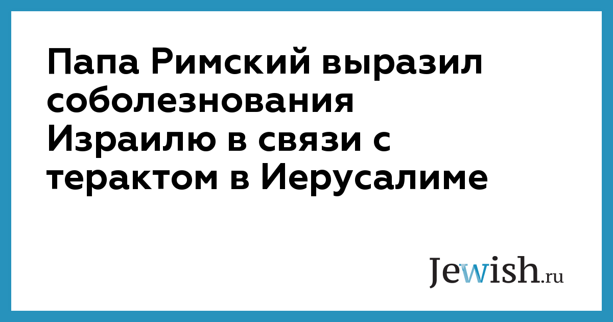 Папа Римский выразил соболезнования Израилю в связи с терактом в Иерусалиме