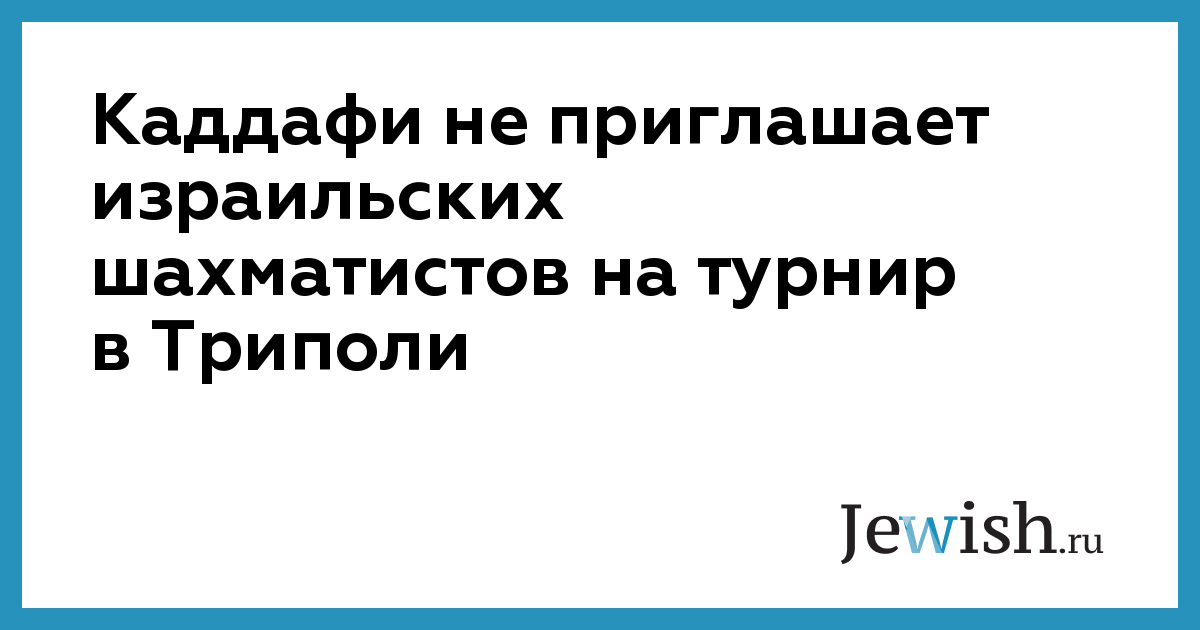 Каддафи отметил, что израильские шахматисты не будут допущены к участию в турнире в Триполи "во избежание проблем". Игры с участием израильтян планируется проводить на Мальте.