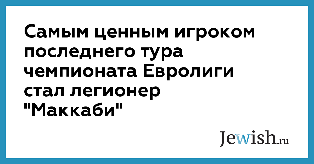 Самым ценным игроком последнего тура чемпионата Евролиги стал легионер "Маккаби"