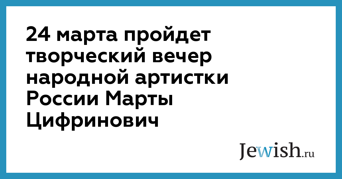 24 марта пройдет творческий вечер народной артистки России Марты Цифринович
