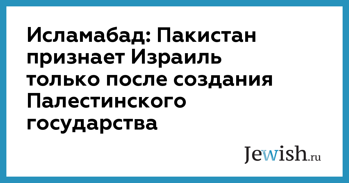 Исламабад: Пакистан признает Израиль только после создания Палестинского государства