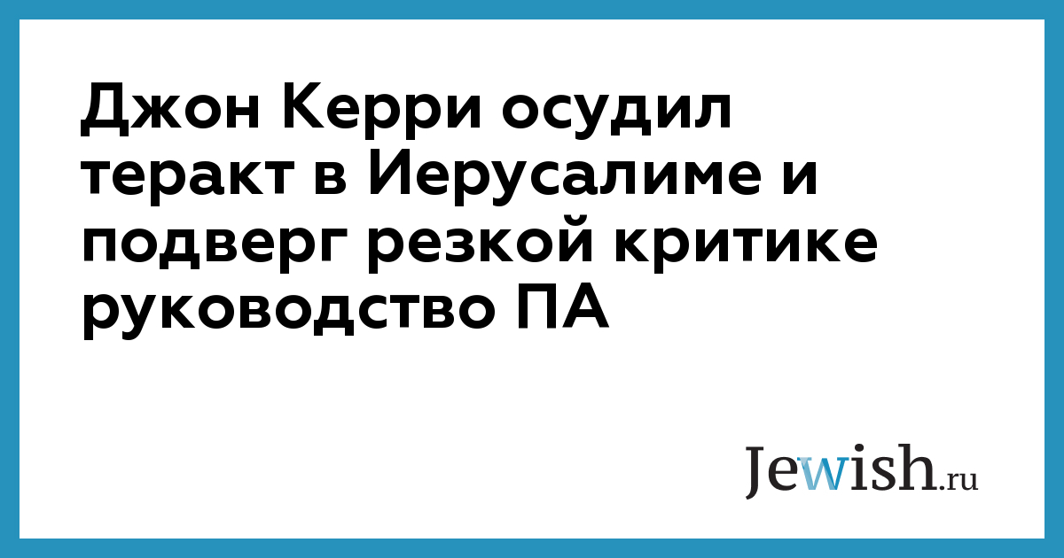 Джон Керри осудил теракт в Иерусалиме и подверг резкой критике руководство ПА