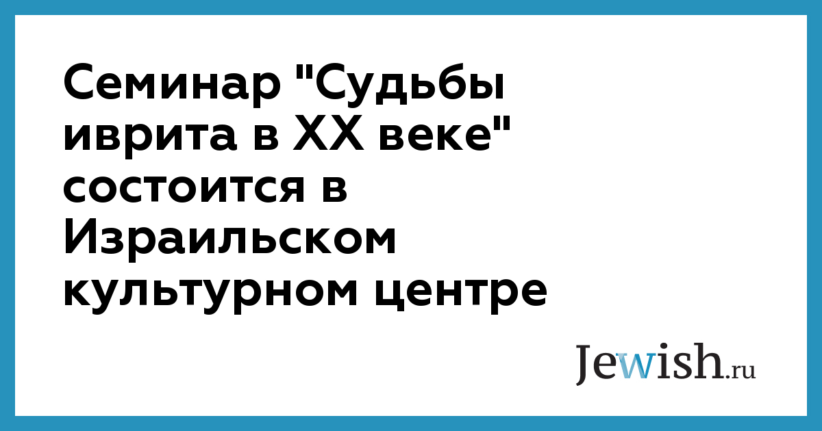 Семинар "Судьбы иврита в XX веке" состоится в Израильском культурном центре
