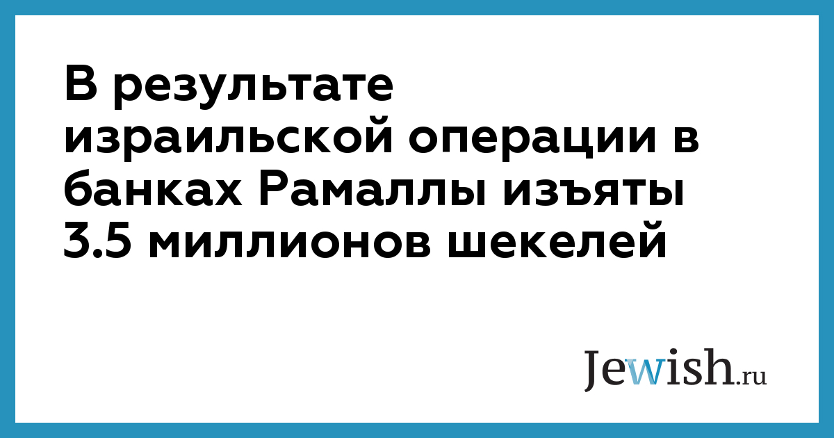 В результате израильской операции в банках Рамаллы изъяты 3.5 миллионов шекелей