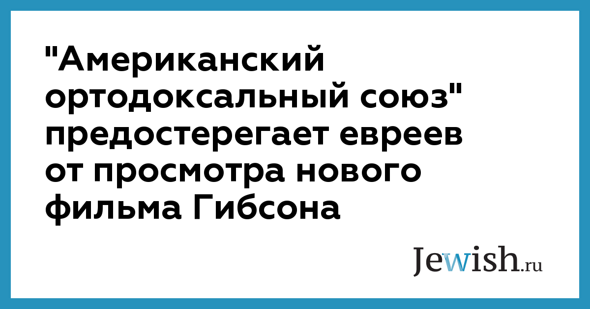 "Американский ортодоксальный союз" предостерегает евреев от просмотра нового фильма Гибсона