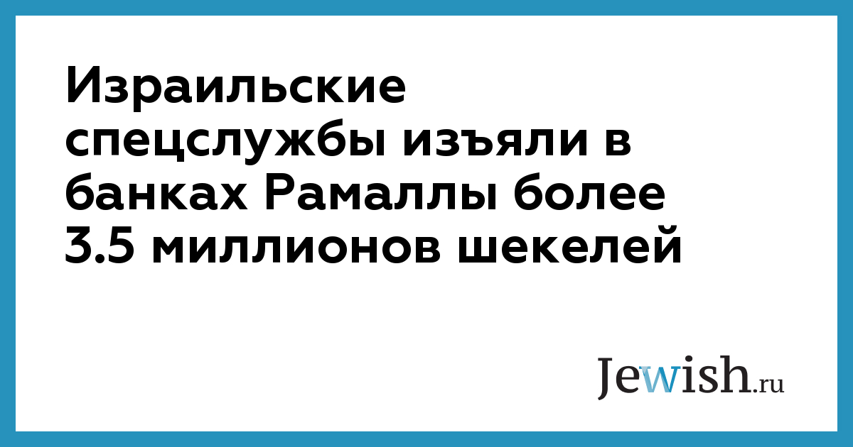 Израильские спецслужбы изъяли в банках Рамаллы более 3.5 миллионов шекелей