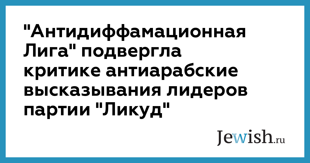 "Антидиффамационная Лига" подвергла критике антиарабские высказывания лидеров партии "Ликуд"