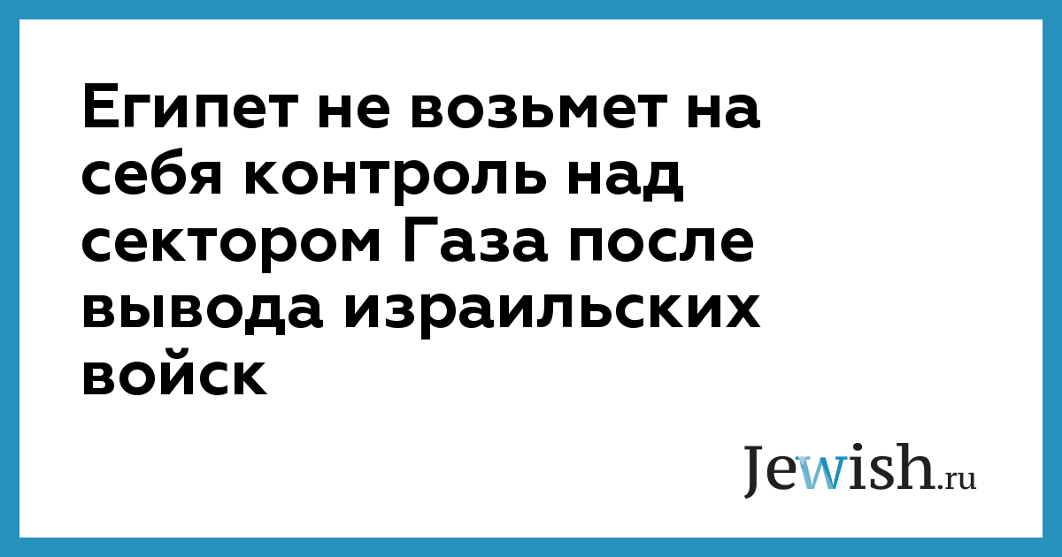 Египет не возьмет на себя контроль над сектором Газа после вывода израильских войск