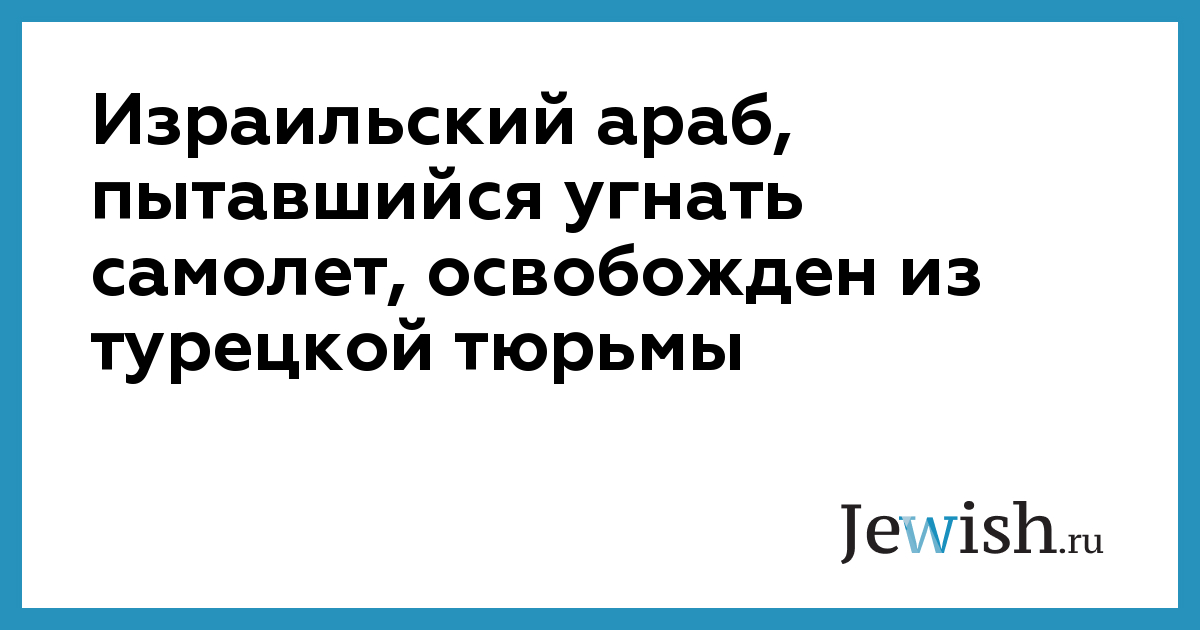 Израильский араб, пытавшийся угнать самолет, освобожден из турецкой тюрьмы