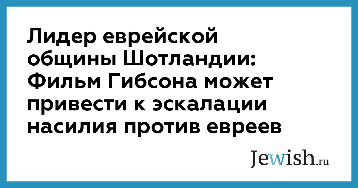 Лидер еврейской общины Шотландии: Фильм Гибсона может привести к эскалации насилия против евреев