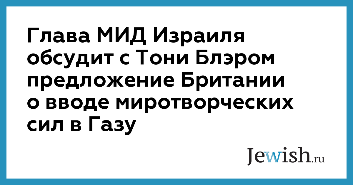 Глава МИД Израиля обсудит с Тони Блэром предложение Британии о вводе миротворческих сил в Газу