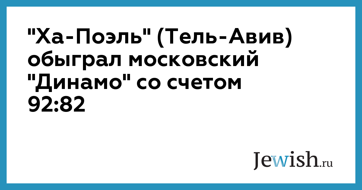"Ха-Поэль" (Тель-Авив) обыграл московский "Динамо" со счетом 92:82