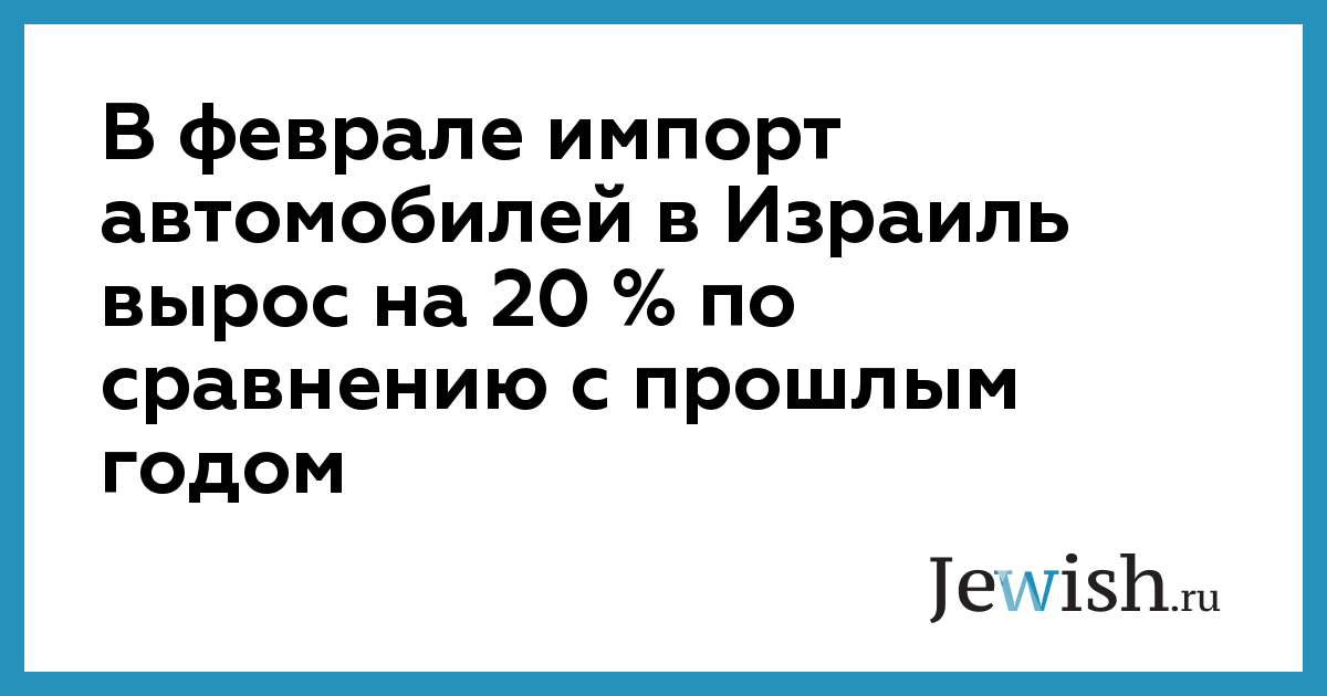 В феврале количественный показатель импорта автомобилей увеличился на 20%, а в первые два месяца года — на 53%. В общей сложности в феврале были импортированы около 8000 автомобилей на сумму в 82,5 миллиона шекелей.