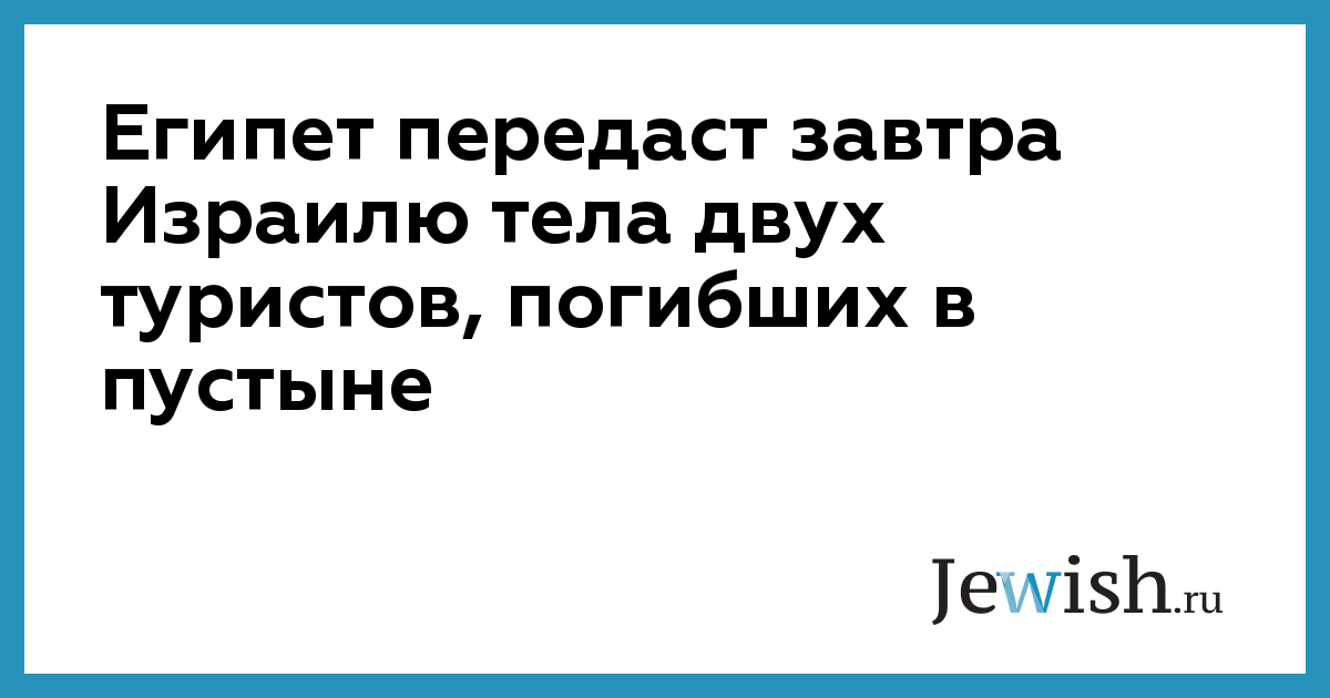 Египет передаст завтра Израилю тела двух туристов, погибших в пустыне