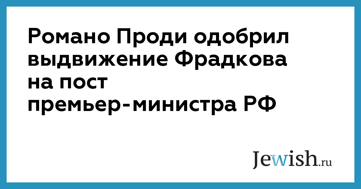"Я был очень рад услышать известие о выдвижении Михаила Фрадкова на пост премьер-министра России", — сообщил Проди. Он отметил, что в ходе контактов в Брюсселе у него сложились "великолепные партнерские и личные отношения с Фрадковым". "Он мне глубоко симпатичен как человек", — сказал Проди.