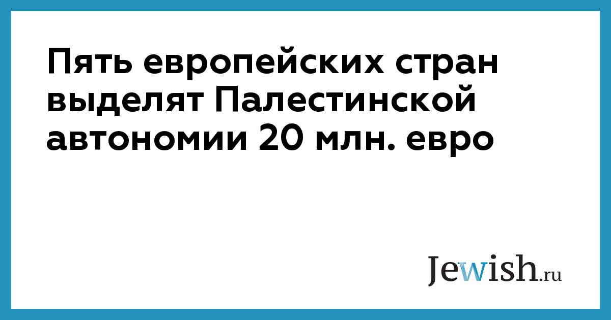 Пять европейских стран выделят Палестинской автономии 20 млн. евро