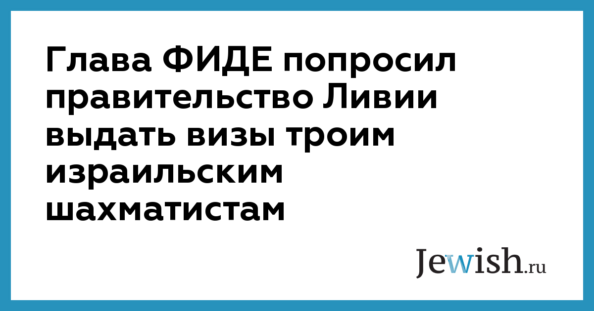 Глава ФИДЕ попросил правительство Ливии выдать визы троим израильским шахматистам