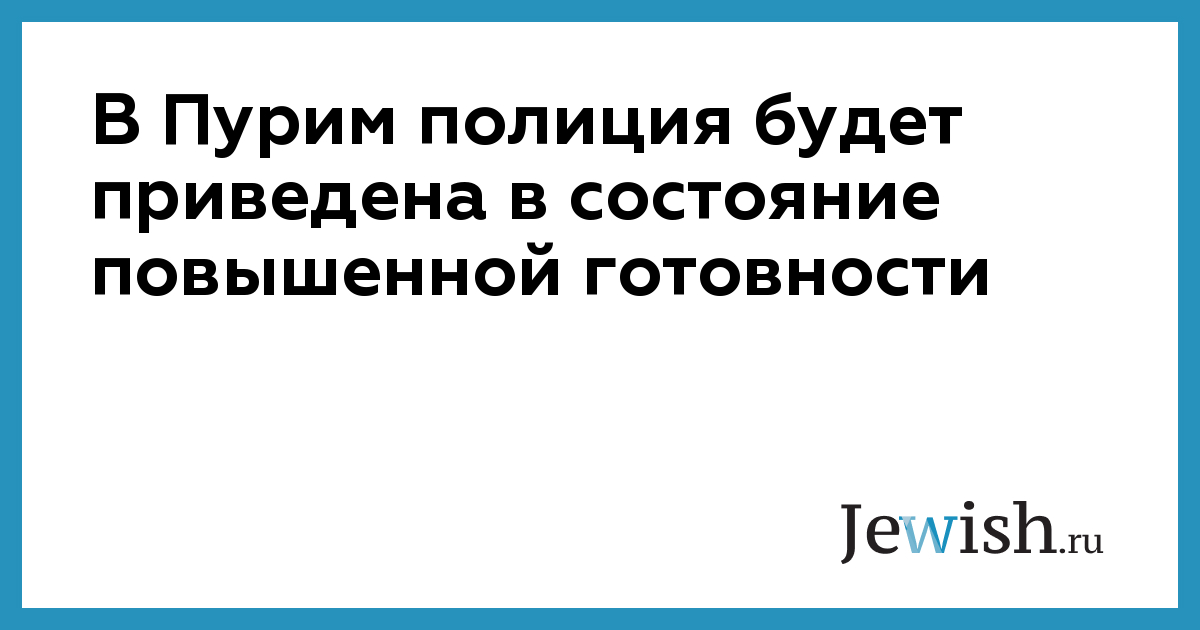 В Пурим полиция будет приведена в состояние повышенной готовности