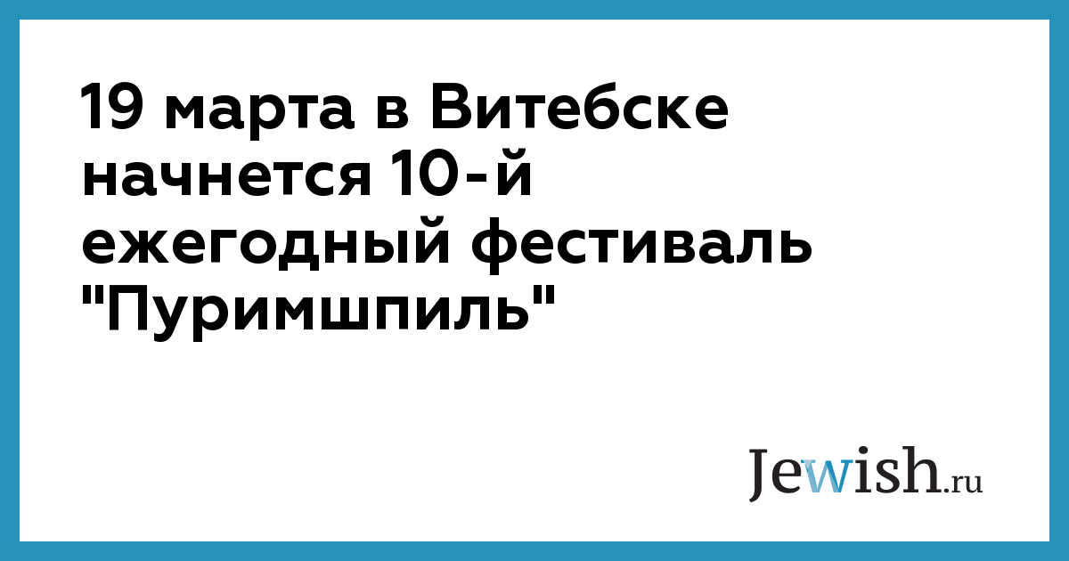 19 марта в Витебске начнется 10-й ежегодный фестиваль "Пуримшпиль"