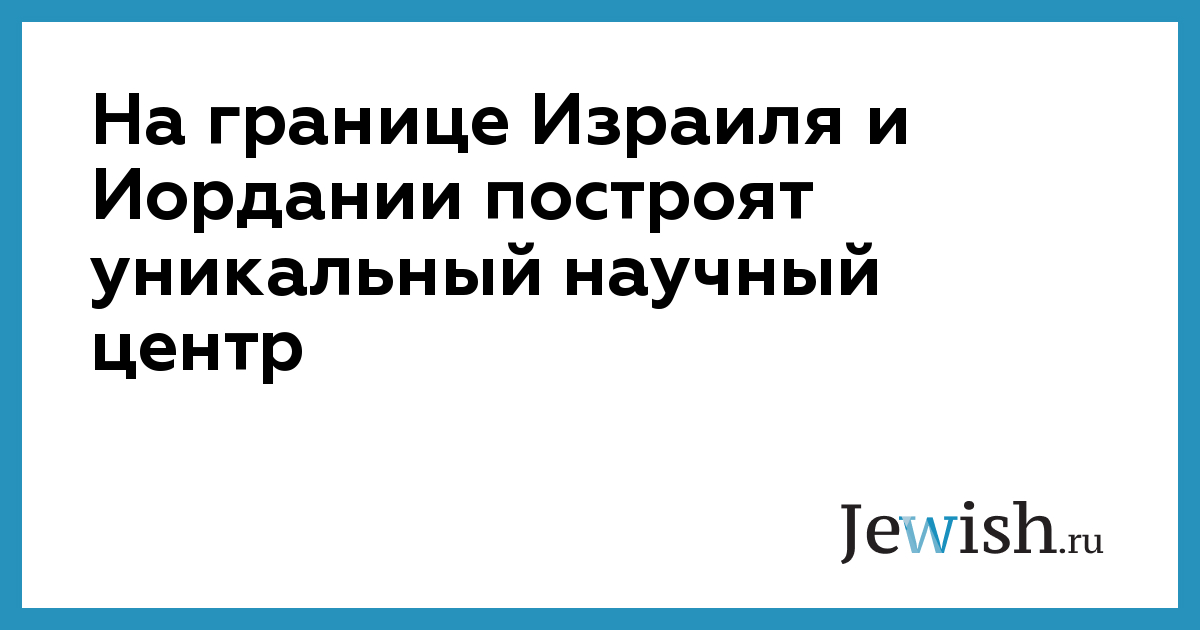 На границе Израиля и Иордании построят уникальный научный центр