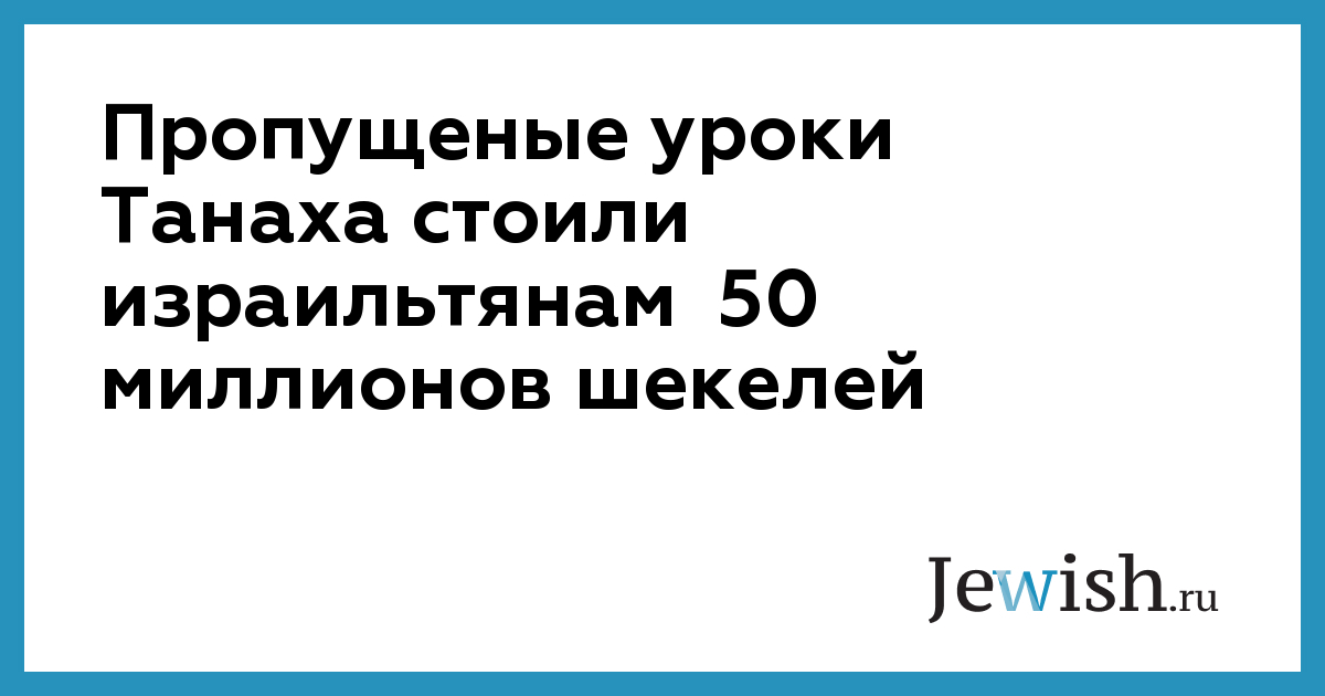 Пропущеные уроки Танаха стоили израильтянам 50 миллионов шекелей