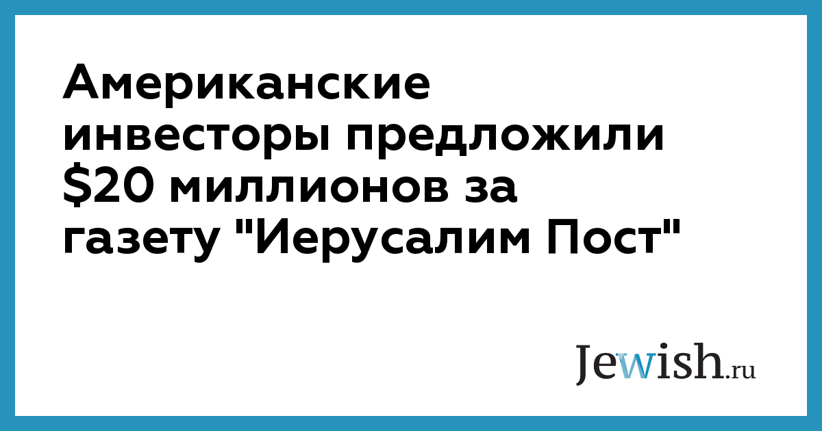 Американские инвесторы предложили $20 миллионов за газету "Иерусалим Пост"