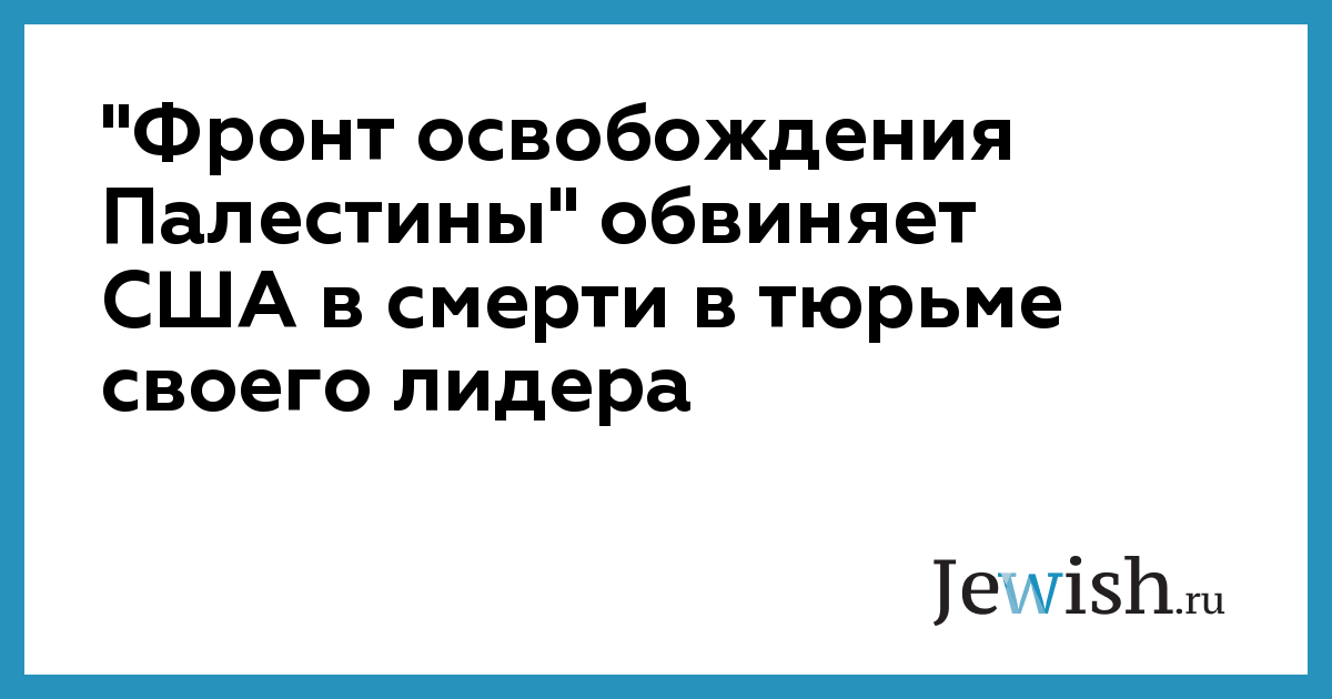 "Фронт освобождения Палестины" обвиняет США в смерти в тюрьме своего лидера