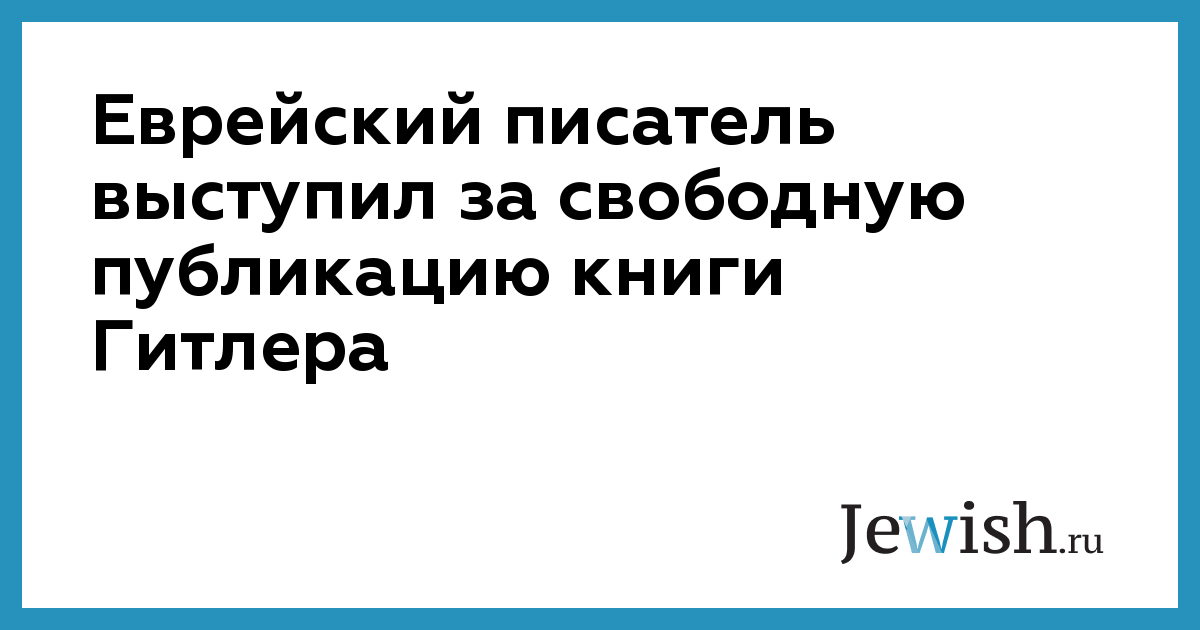Еврейcкий писатель выступил за свободную публикацию книги Гитлера
