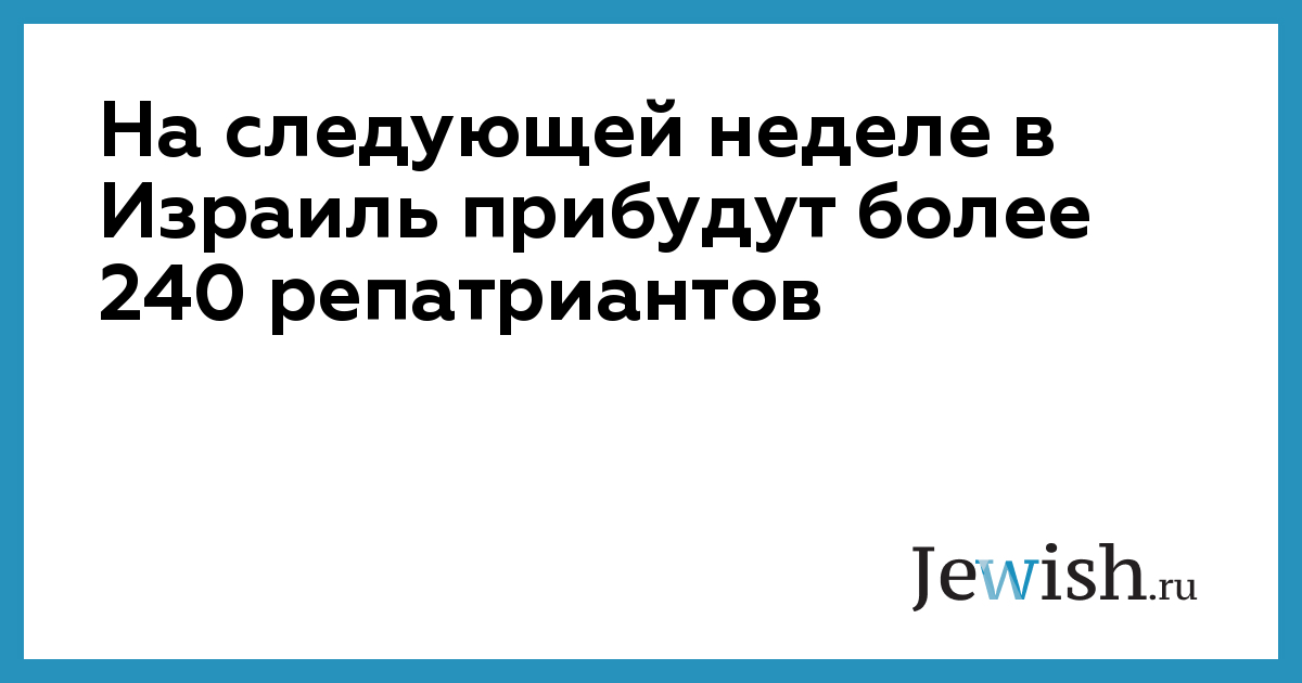 На следующей неделе в Израиль прибудут более 240 репатриантов