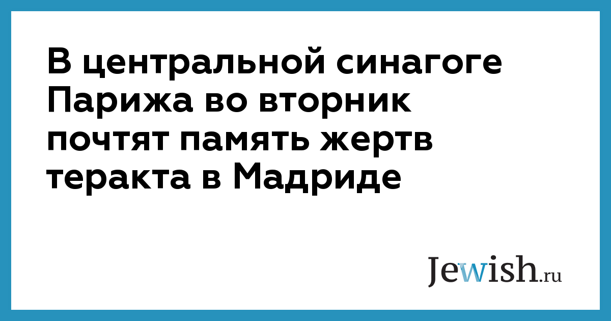 В центральной синагоге Парижа во вторник почтят память жертв теракта в Мадриде