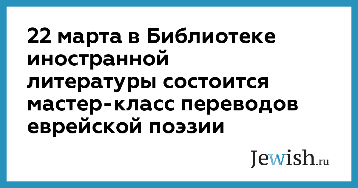 22 марта в Библиотеке иностранной литературы состоится мастер-класс переводов еврейской поэзии
