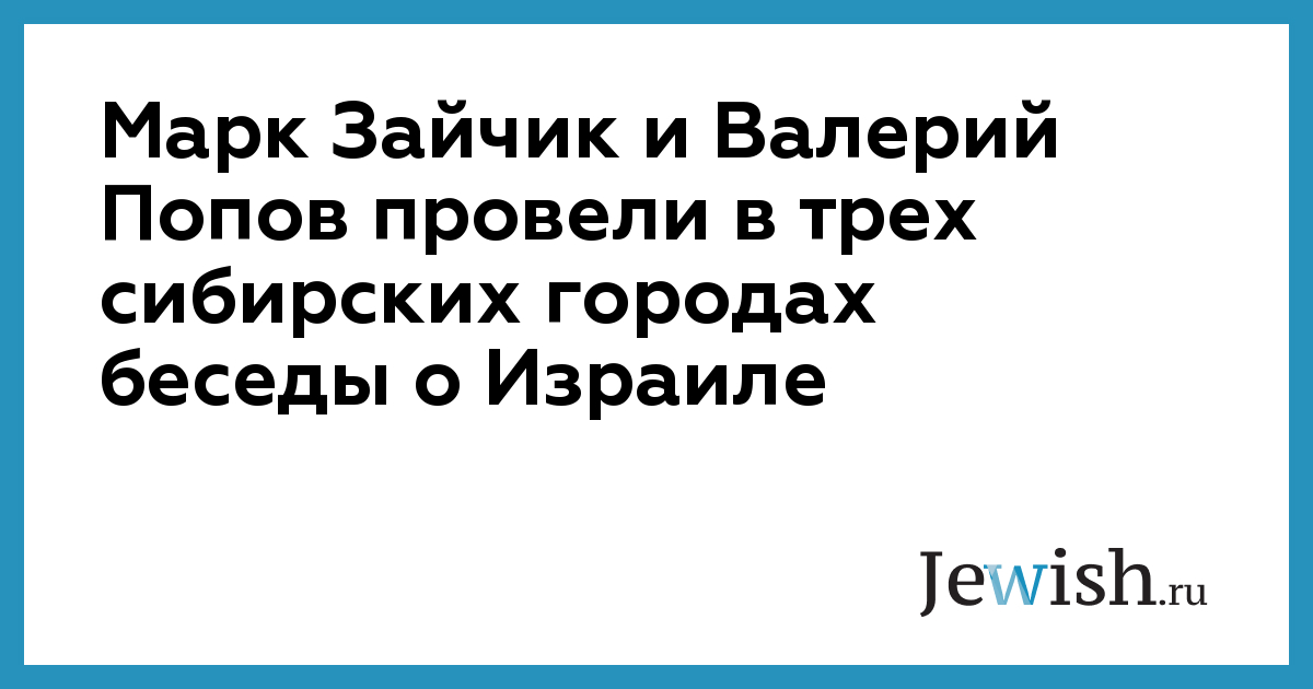 Марк Зайчик и Валерий Попов провели в трех сибирских городах беседы о Израиле