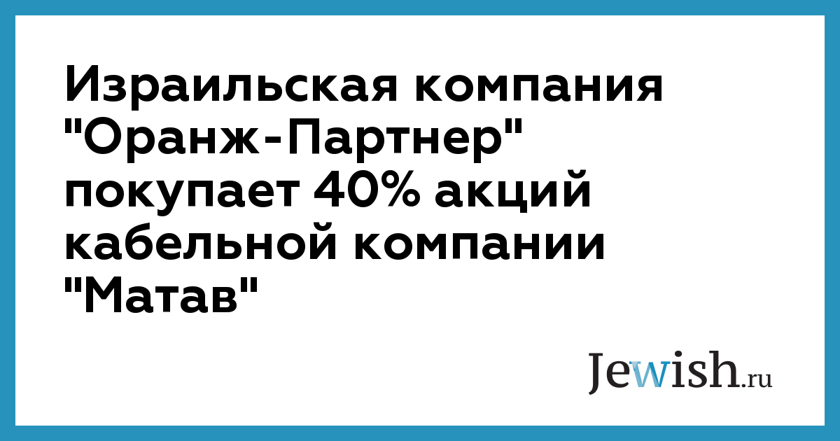 Израильская компания "Оранж-Партнер" покупает 40% акций кабельной компании "Матав"