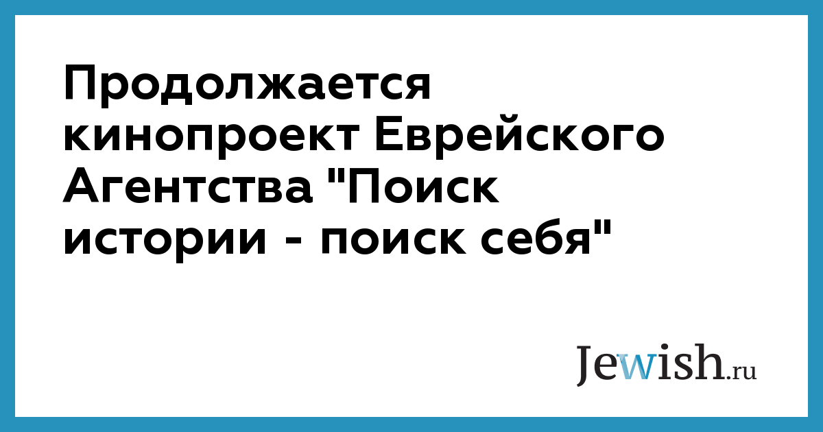 Продолжается кинопроект Еврейского Агентства "Поиск истории — поиск себя"