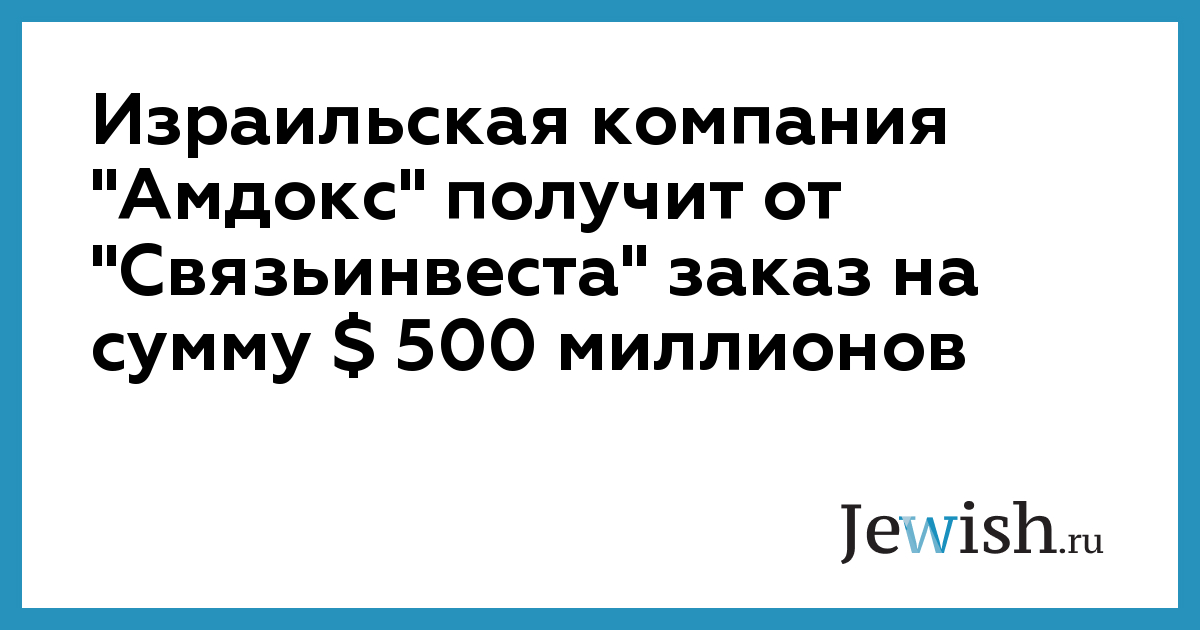 Израильская компания "Амдокс" получит от "Связьинвеста" заказ на сумму $ 500 миллионов