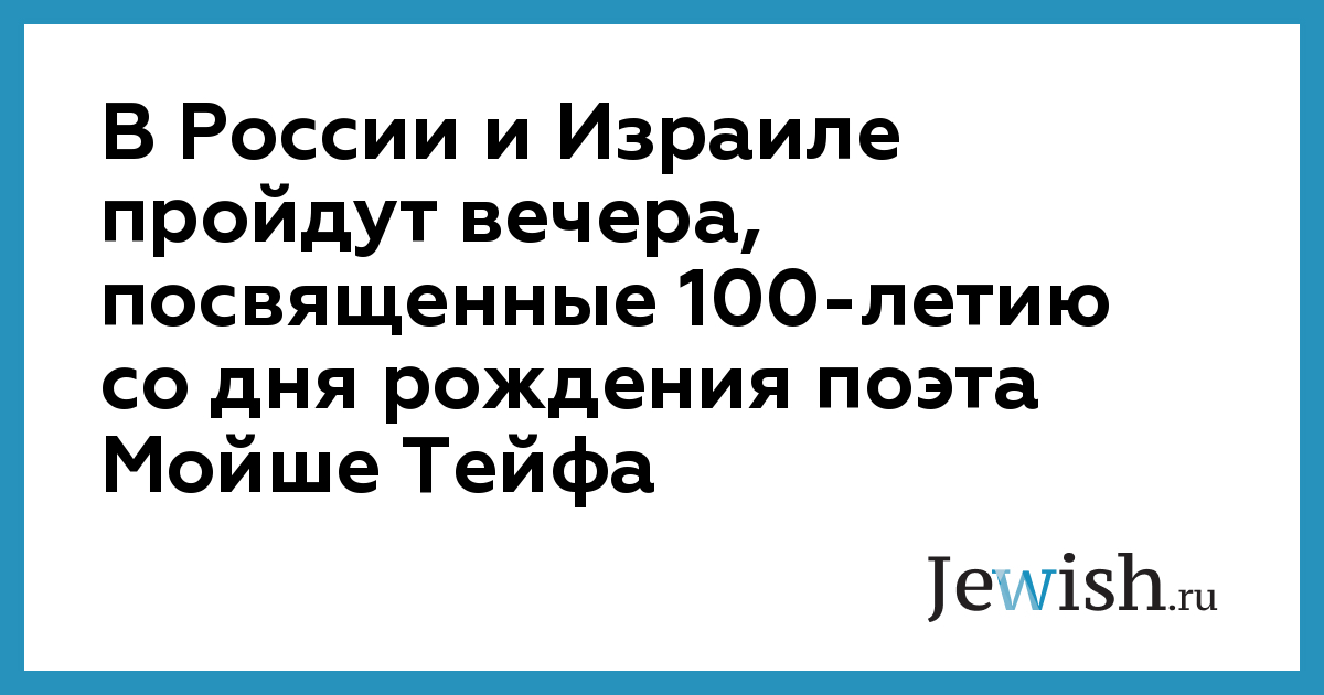 В России и Израиле пройдут вечера, посвященные 100-летию со дня рождения поэта Мойше Тейфа
