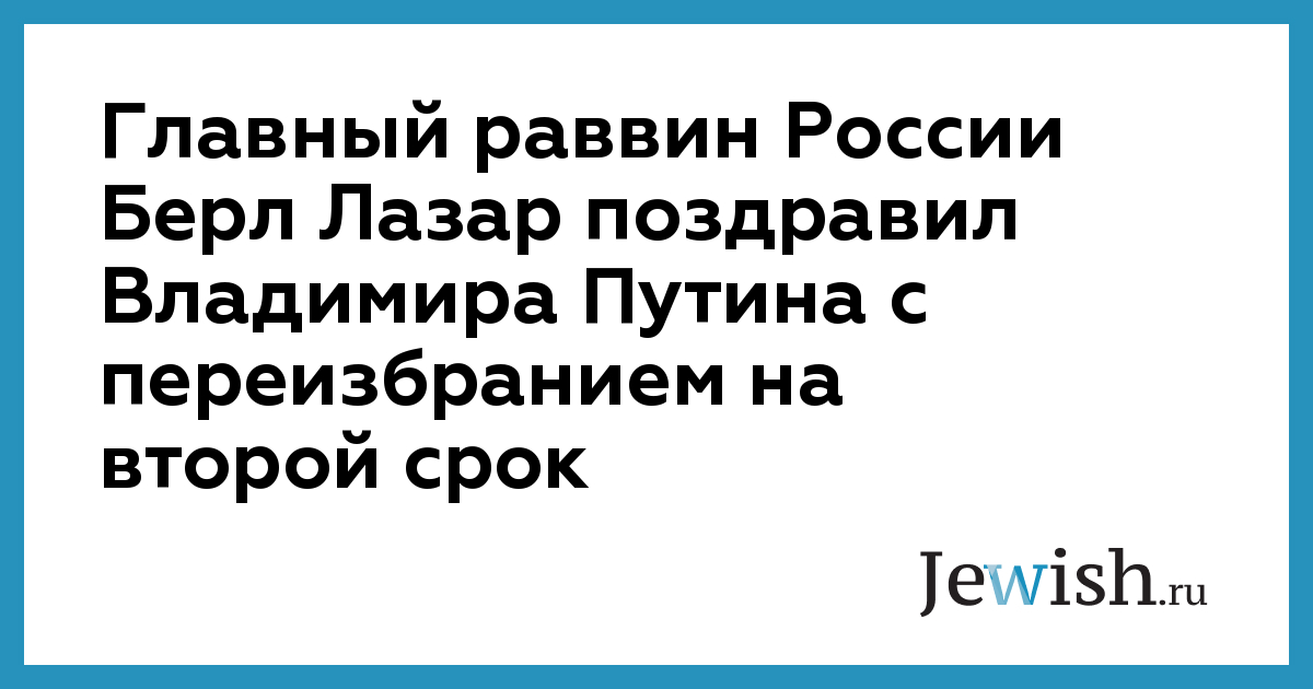 В своем послании главный раввин России от лица еврейской общины России и от себя лично поздравил Владимира Путина с избранием на второй президентский срок.