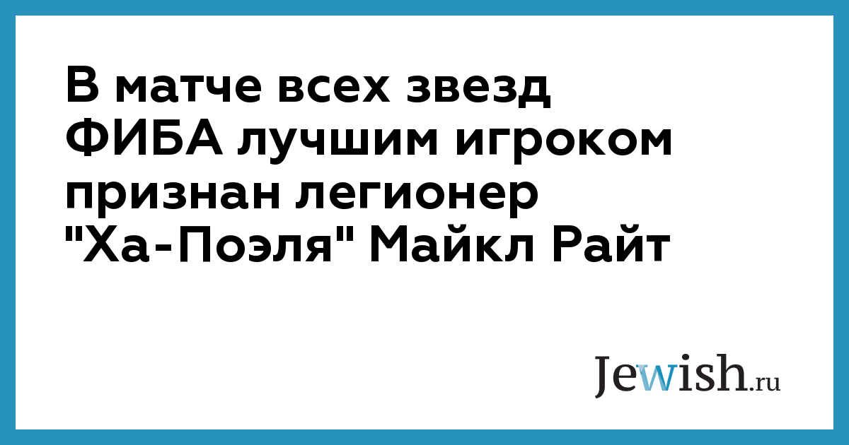 В матче всех звезд ФИБА лучшим игроком признан легионер "Ха-Поэля" Майкл Райт