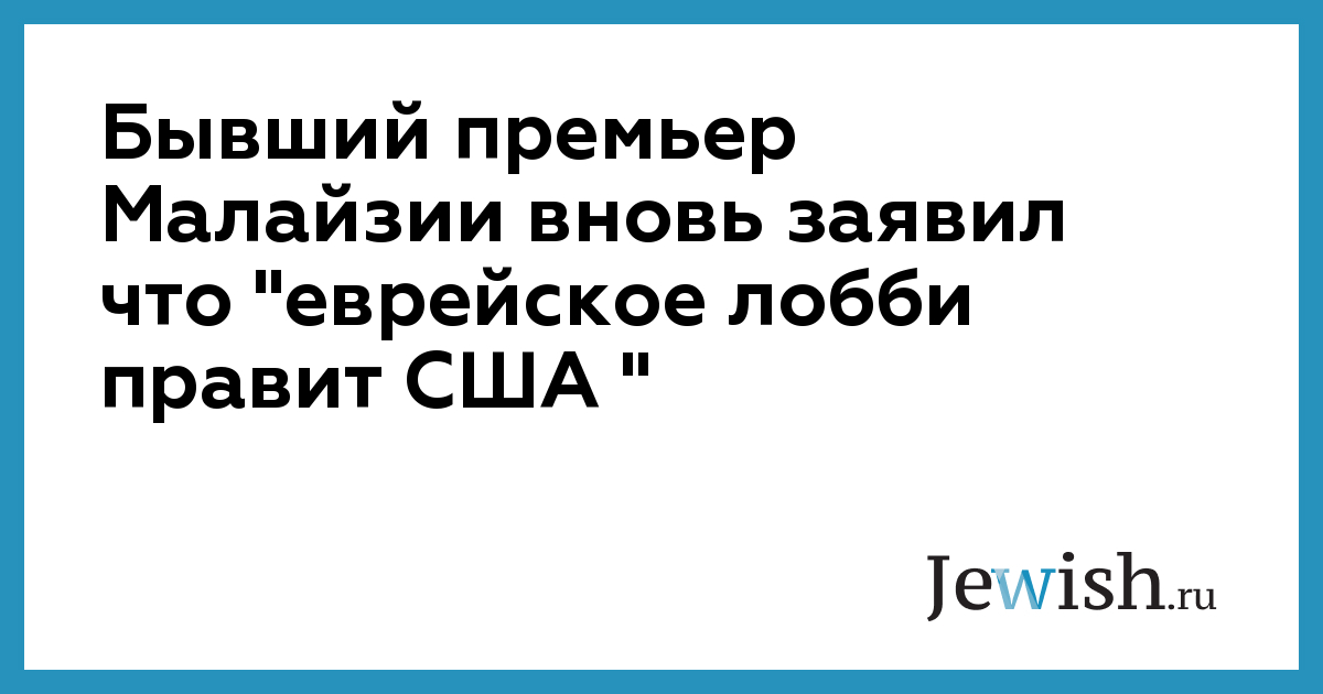 Бывший премьер Малайзии вновь заявил что "еврейское лобби правит США "