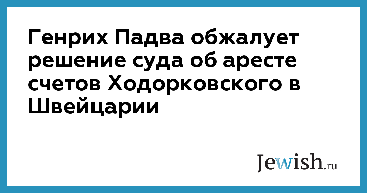 Генрих Падва обжалует решение суда об аресте счетов Ходорковского в Швейцарии