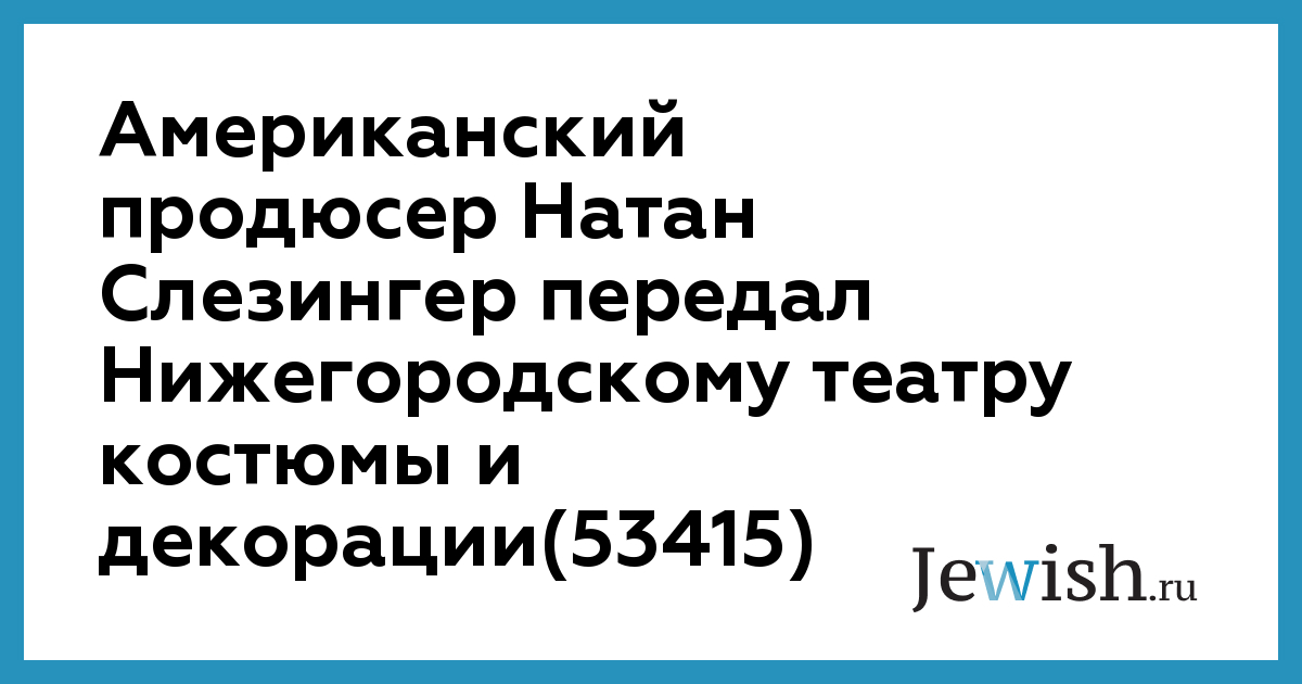 Американский продюсер Натан Слезингер передал Нижегородскому театру костюмы и декорации(53415)